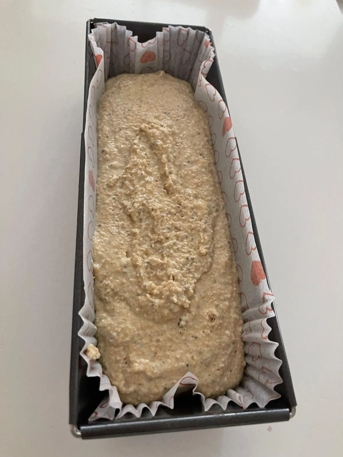 Zutaten vermischen und mit dem Spatel nach unten schieben. Teig in die Kastenform geben und 40 min ( 180°C ) backen.